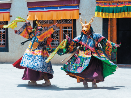 На улицах Лхасы идут народные гуляния. Женщины, собравшись по трое и по четверо, водят хороводы и поют песни. Дети скачут через веревочные прыгалки.
