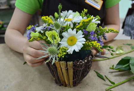 Лето — самое время создавать композиции из подручных средств и цветов. Мы предлагаем вам сделать цветочную композицию — в подарок или как украшение для летнего стола — своими руками. А в качестве материала для этого мастер-класса вы можете использовать любые цветы, которые найдете в саду, на даче или в поле.