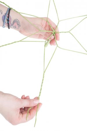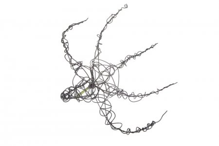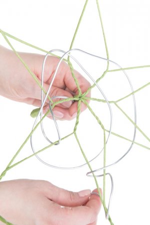 - Начиная с середины отгибаем каждую проволоку под прямым углом к основанию. Далее скручиваем соседние между собой, делаем примерно 4-5 оборота. Потом формируем ряд ячеек, соединяя каждые соседние проволоки между собой, при этом образуя большие ромбики с острыми углами. Остатки проволоки в углах ромба скручиваем до конца между собой и оставляем вытянутыми к верху, в форме раскрытого зонта.