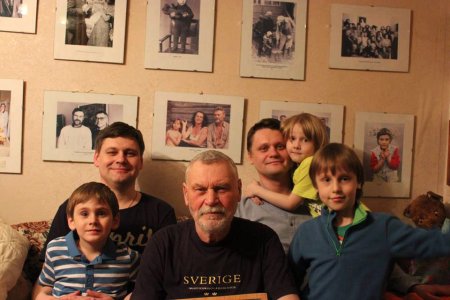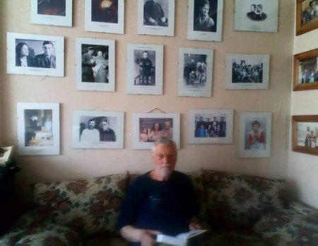 Михаил Сергеевич Голицын на фоне семейных фотографий