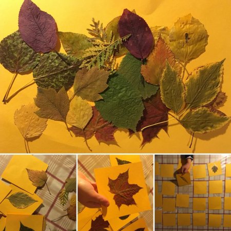 Если собрать и высушить листья разных растений, то можно сделать одну из любимых детских игр — мемо. Нужно подобрать хотя бы 8-10 пар разных видов. А сохранить их опять же поможет самоклеящаяся пленка.