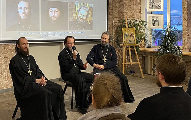 О мужественности рассуждали и спорили на встрече в рамках Московского семейного лектория культурно-просветительского пространства «Фавор» протоиерей Павел Великанов, архимандрит Симеон (Томачинский) и автор книги «Мужская философия» иеромонах Симеон (Мазаев).