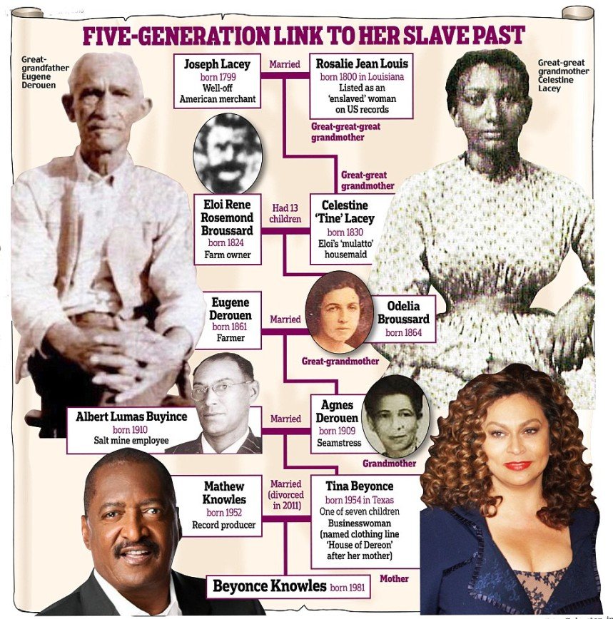 Не секрет, что в США более сотни лет процветала торговля людьми, которые исполняли все требования своих хозяев. Каким же было удивление почитателей таланта певицы Бейонсе, когда она сообщила, что среди ее предков также были рабы. Речь идет о ее пра-пра-прабабушке Розали Жан Луи. Знаменитость изучила родословную и узнала, что в свое время несвободная прародительница стала супругой работорговца Джозефа Лейси из Луизианы, который влюбился в нее.