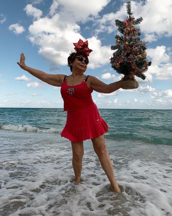 Традиционно поп-исполнительница Наташа Королева отправляется на новогодние каникулы в Майами, где отдыхает от тяжелых творческих будней. 73-летняя мама знаменитости Людмила Порывай составила компанию семье своей дочери и оригинально поздравила всех с праздниками. На новом фото, которое певица показала в сети, ее родительница изображена в откровенном виде – облаченная в ярко-красный наряд, состоящий из топа и юбки. В подобной одежде в США выступают на разогреве публики перед спортивными матчами девушки-чирлидеры.