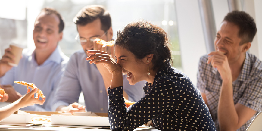 После шутки человек оказывается в психологически безопасной зоне — например, шутка, отпущенная на рабочем совещании, помогает работникам на минуту выдохнуть, «переключить» состояние стресса.