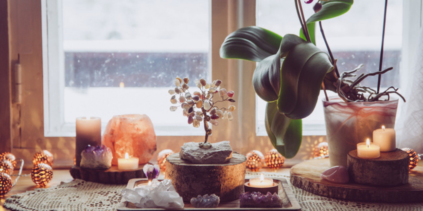 Кристаллы — один из лучших символов «матери-земли». Если разместить их в углу на юго-западе спальни, это принесет счастье в любовных отношениях. Прежде чем выставить или вывесить кристалл, его нужно очистить, погрузив на семь дней в воду с морской солью. Если Вы хотите, чтобы мужчина говорил о своих чувствах, кристалл должен быть подсвечен.
