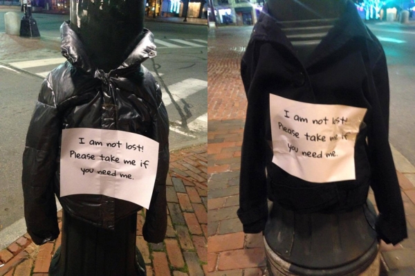 Молодая девушка из США решила помочь тем, кто мерзнет на улицах зимой и не может позволить себе купить теплую одежду: она приобрела пять теплых курток по доллару в секонд-хенде и разместила их на главных перекрестках Портленда (США).