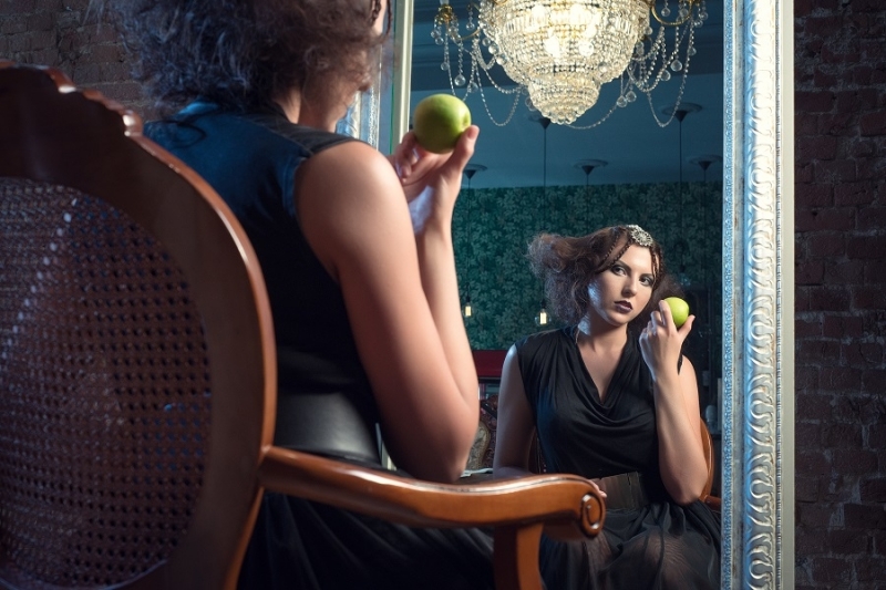 1. Первый образ — ещё вполне земной и реальный, но, конечно, не повседневный. Коктейльный наряд, вечерний макияж, волосы, уложенные волной, — томная незнакомка, встреченная случайно, но запомнившаяся надолго.