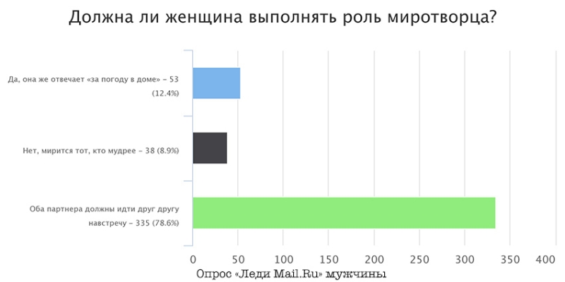 Единого мнения о том, кто именно должен делать первый шаг к примирению, у наших читателей нет. Больше половины считают, что все зависит от ситуации. Следующий по популярности ответ — «тот, кто виноват в ссоре».