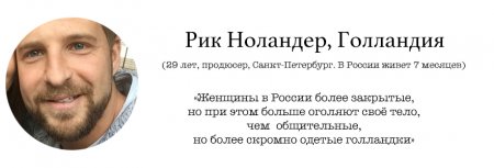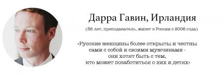 Чемпионат мира по футболу давно закончился, первые свадьбы болельщиков с россиянками уже состоялись. Но самые прозорливые иностранцы перебрались в Россию уже давно, а некоторые даже выбрали своих суженых задолго до грандиозного события. Мы спросили у экспатов, чем их поразили наши соотечественницы. Что меня удивило Разница между женщинами разных возрастов. Женщины старшего поколения кажутся мне намного более крепкими физически и сильнее духом. Молодые девушки, напротив, выглядят очень деликатными и эмоциональными, как нежные принцессы. О свидании по-русски В Санкт-Петербурге я обычно знакомился с девушками на работе, через коллег или друзей. Свидания более формализованы — ты должен пригласить девушку куда-то: в кафе, на выставку, на концерт. Это больше похоже на традиции Америки. В Ирландии и Великобритании свидания более неформальные. Люди обычно просто знакомятся на вечеринках, общаются, девушки не особо привыкли к церемониям. Будущую жену я встретил в 2009 году. Она была немного шокирована, что первое свидание не было организовано так, как она привыкла. Мы успели побывать за один вечер сразу в трех заведениях: странном алжирском кафе, гламурном лаунж-ресторане и широко известном в узких кругах злачном баре. Для нее было более привычно пойти на свидание на выставку, концерт или пикник, а не в бар! Публикация от Англия • UK • Великобритания (@taisia_gavin) 19 Авг 2018 в 10:40 PDT Во время загрузки произошла ошибка. О русских женщинах Русские женщины более открыты и честны сами с собой и своими мужчинами: они хотят быть с тем, кто может позаботиться о них и детях. Многие с трудом выживали в 90-х, несложно понять, откуда у женщин это стремление. Ирландки и британки врут себе и своим партнерам, что не хотят выходить замуж и иметь детей. Но, перешагнув тридцатилетний рубеж, начинают беспокоиться, что время стремительно уходит. Они много говорят про власть женщин и равноправие, про независимость и построение собственной карьеры. И одновременно с этим жалуются на недостаток «приемлемых» или «успешных» мужчин. То есть на самом деле мужчина должен быть обеспеченнее их самих. При этом они отрицают, что им важна материальная сторона вопроса. О распределении ролей Независимо от того, русская у меня жена или нет, лично я придерживаюсь мнения, что у нас может быть либо современная модель, когда оба партнера работают и поровну занимаются домом и детьми, либо традиционная, когда муж основной источник дохода, а жена с детьми и на хозяйстве. Ситуацию, когда кто-то в паре получает преимущества от обеих моделей отношений, я считаю неприемлемой. О работе На работе русские женщины всегда доброжелательны, но сдержанны. Дружба между мужчинами и женщинами не принята. Есть четкие границы в том, что разрешено говорить в присутствии коллег (шутки ниже плинтуса и сквернословие — табу). В Ирландии отношение к коллегам не зависит от пола. Мы можем быть и друзьями, и/или романтически интересоваться друг другом. Работая с женщинами, можно позволить себе расслабиться. Но переходить черту не стоит, это может быть опасно как для профессиональных отношений, так и для дальнейшего развития карьеры. Что меня удивило Русские женщины очень заботливые, невероятно красивые, даже роскошные. Еще дают «приказы», что и когда надо беспрекословно сделать. Я описываю их словом «доминантные» в с