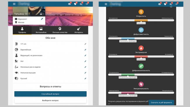 Наш автор Татьяна Якимова зарегистрировалась в нескольких приложениях для знакомств, чтобы выяснить: можно ли найти подходящего мужчину, когда тебе (и ему) за 50.Сайты знакомств — такая же реальность сегодняшнего дня, как платежи онлайн или доставка обедов на дом. И не важно, 20 тебе лет или за 50. Очень удобно, особенно, когда не хватает кавалеров. А в определенном возрасте начинает казаться, что их почти не осталось, кроме соседа-алкоголика да парочки бывших, от которых уже мутит. Но это иллюзия, которую можно и нужно развеять. Хотя бы попытаться! Терять-то все равно нечего. Я из тех женщин, кто не видит в старении трагедии. Даже Instagram свой назвала aging-shmaging (от англ. «старение-шмарение»). Хотя, не скрою, морщины на предплечьях и целлюлит на бедрах украшением не назовешь. Но тоже не повод для уныния. Все стареют, и мужчины тоже. А любви все возрасты покорны. Татьяна Искать на сайте мужчину накануне пенсии — не значит играть в игры «не по возрасту». Ничего унизительного. Просто попытка найти близкого человека. Главное — понять, кто близок именно вам. Это очень важно и для создания гармоничной пары, и для сохранения самооценки, если вдруг кто-то вами пренебрег. Вам никогда не нравились альфонсы? Тогда зачем переживать, что кто-то спросил, есть ли у вас приданое? Ваше главное богатство — вы сами. Понравившийся мужчина ищет кого помоложе? Пусть ищет, флаг ему в руки. Вы тоже не его ищете. А того, кто вам понравится своими жизненными принципами и устоями. И которому понравитесь вы. Сложно? Не сложнее, чем в реальности.Единственное противопоказание — вы ищете кого-то, чтобы заполнить пустоту в жизни и душе. Если ваше существование кажется настолько скучным и бессмысленным без мужчины, что вы готовы вцепиться в любого, — не ходите на сайт знакомств!Вы попадетесь на первую же удочку внимания, которая на 99 процентов окажется лживой. Вам нужна помощь психотерапевта, чтобы поверить: жизнь не может быть совсем уж пустой. Даже если она иногда кажется таковой. А когда поверили — добро пожаловать! Возможностей полно. Я одинокая, привлекательная, 58-летняя — выбрала T*** (многие подруги хвалили) и D*** для пожилых (давайте называть вещи своими именами). D*** оказался более комфортным. Честно предупреждает, что бесплатно только анкета (интересная, кстати, заставляет задуматься и отвечать на вопросы, минимально приукрашивая себя), подбор подходящих кандидатов (экономит время поиска) и лайки. T*** красивее и современнее, зато начинает требовать деньги внезапно. Профиль Татьяны в Т*** D*** я перевела две тысячи за три месяца, а в T*** зарегистрировалась без привилегий. Правильно сделала: тамошние дядечки чаще заставляют вспомнить поговорку «седина в голову — бес в ребро» и разными способами дают понять, что женским вниманием не обделены. Так что основной упор я сделала на D***. На обоих сайтах выложила фотографии, на которых я вполне узнаваема и морщины не зафотошоплены. Положенный в день десяток кандидатов лайкала без претензий к их внешности, но анкеты изучала скрупулезно! Писать первой не стеснялась — особенно тем, у кого лица добрые, а в анкетах что-то зацепило. И началось общение. Мужчин за 50, жаждущих обрести счастье с ровесницей, на D*** очень много! В подавляющем большинстве — без жилищных проблем. Уровень достатка — средний и ниже среднего. Есть, есть зажиточные, но о них отде