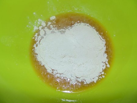 Все взбиваем блендером, прибавляем полстакана пытки, опять взбиваем все блендером чрезвычайно кропотливо, чтоб не было комочков.