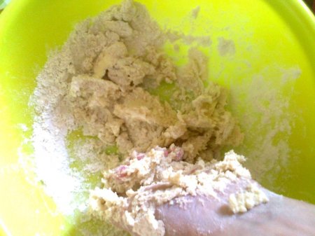 Делим тесто на 2 доли, так,чтобы одна из их была чуток больше иной. В одну часть( та,что больше)примешиваем имбирь, в иную корицу( можнож добавить какао либо кофе).