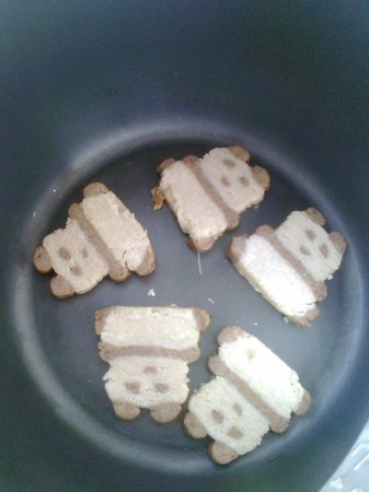 Подстывшую конструкцию щепетильно нарезаем на "печенье" острым ножиком. Толщина на ваше усмотрение, но не чрезвычайно толсто. У меня приблизительно 2-4 мм. Укладываем в чашу мультиварки( либо на противень)так, чтоб меж "мишками" было солидное расстояние. Ставим режим "Выпечка". Первая порция выпекается приблизительно за 15-20 минут(в духовке ок. 10 минут, при температуре 180 гр), следующие порции 10-15 минут(в духовке ок. 7 минут).