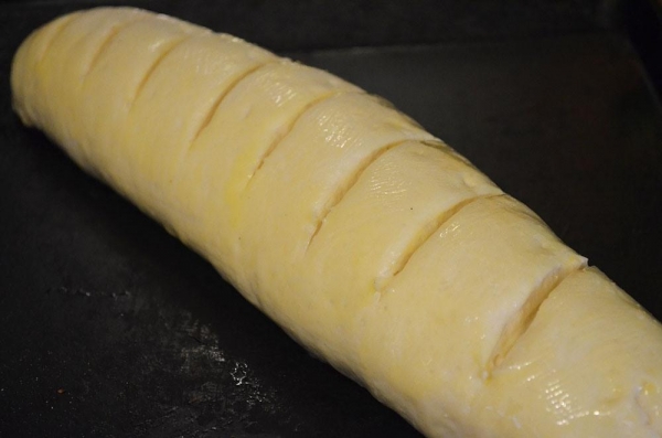 Категория рецептов: Выпечка и сладости Рекомендуется детям: 2 - 3 года, от 3 лет Время приготовления: 2 часа 20 минут Ингредиенты Молоко 200 мл вода 50 мл дрожжи сухие 1,5 ч. ложек сахар 1 ст. ложка соль 1 ч. ложка масло растительное 2 ст. ложки желток для смазки 1 штука мука 450-500 грамм Процесс приготовления 1 Смешать молоко с водой, подогреть, добавить дрожжи и дать постоять 5 минут. Затем добавить сахар и соль, перемешать. добавить часть просеянной муки, и растительное масло, перемешать и добавить оставшуюся муку.Хорошо вымесить тесто в течении 5-10 минут. Убираем в чашку или любую удобную емкость, накрываем полотенцем и оставляем в теплом месте для подъема, примерно на час. 2 Поднявшееся тесто раскатываем в пласт и сворачиваем рулетом, зажимая край, после каждого оборота. 3 Кладем на противень и ставим в теплое место минут на 20. Через 20 минут делаем надрезы и смазываем желтком. 4 Выпекаем 30-40 минут при 180 гр. Приятного аппетита!