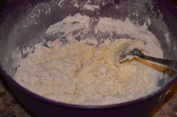 400 грамм муки, смешать с солью, теплым молоком, яйцом и размягченным слив. маслом (20 гр).