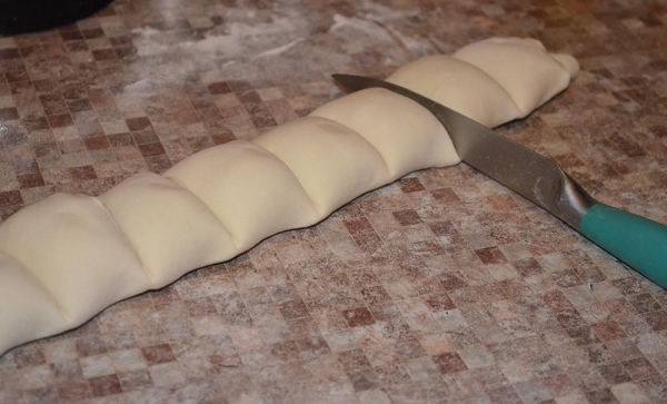 Разделить на порции, тупой стороной ножа.