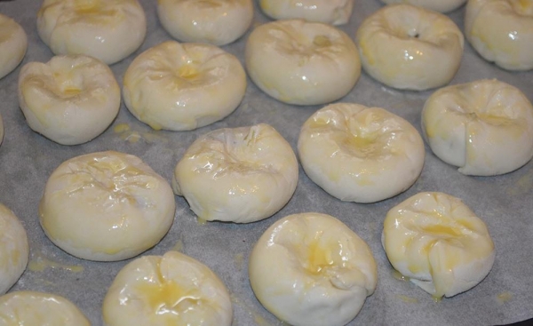 Выкладываем на противень (можно застелить пергаментом), смазываем желтком.