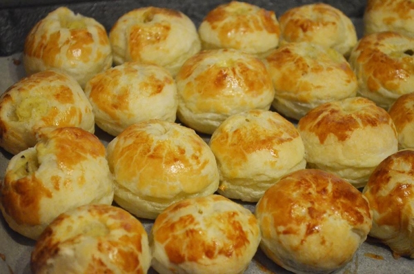 Категория рецептов: Выпечка и сладости Рекомендуется детям: от 3 лет Время приготовления: 50 минут Ингредиенты Картофельное пюре 200-250 грамм лук 1 штука тесто слоеное, пресное (1 пласт) 200 грамм желток (для смазки) 1 штука Процесс приготовления 1 Лук мелко порезать, пожарить до золотистого цвета и смешать с картофельным пюре (я взяла грибы вместо лука). Тесто разделить на две части, раскатать тонко, выложить начинку и свернуть рулетом. 2 Разделить на порции, тупой стороной ножа. 3 С двух сторон соединить края, вдавливая серединку. 4 Выкладываем на противень (можно застелить пергаментом), смазываем желтком. 5 Выпекаем 30 минут при 190 гр. 6 Приятного аппетита!