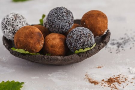 В большой миске смешайте 2 столовые ложки сахара, 2 столовые ложки жидкого шоколада и около 60 г простого печенья (доза может регулироваться в соответствии с вашей предпочтительной консистенцией). С влажными руками сделайте маленькие шарики из смеси, которые обваляйте в горьком какао (альтернативой какао может быть кокос, фисташки, фундук или другие орехи по вашему вкусу).