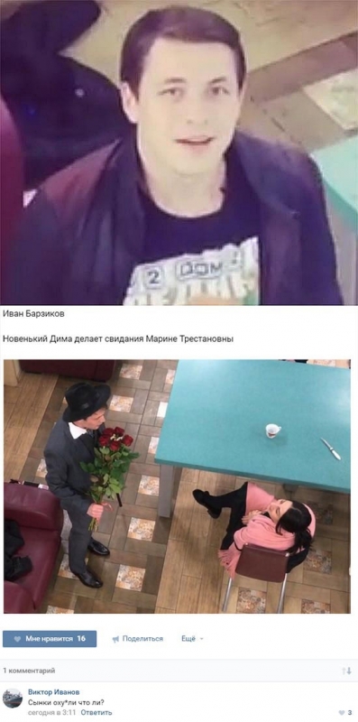 22 ноября 2016 года новенький участник проекта по имени Дмитрий решил проявить мужской интерес к матери Таты Абрамсон Марине Тристановне. Еще совсем недавно члены коллектива телестройки и фанаты реалити-шоу осуждали старшую Донцову за то что женщина пыталась построить отношения в пределах периметра, тем более первоначально Ирина Михайловна стремилась лишь помочь дочери найти достойного ее молодого человека. Однако теперь об устройстве личной жизни с помощью телешоу раздумывает и мать Таты. Исходя из последних новостей Поляны, яркая и эффектная брюнетка, уже достаточно давно перешагнувшая 40-летний рубеж, весьма понравилась новичку Диме, который уверенно объявил о том, что разница в возрасте отнюдь не является препятствием для истинных чувств. Для того чтобы доказать это утверждение Дмитрий даже организовал для Абрамсон-старшей настоящее романтическое свидание, пообещав Марине Тристановне, что и впредь будет преподносить ей различные приятные сюрпризы. Пока неясно, как отреагировала на энтузиазм поклонника, который едва пришел в периметр, сама родительница Таты. Стоит обратить внимание на то, что парень моложе своей возлюбленной не менее чем на 20 лет и никак не годится на роль отчима для скандальной участницы телестройки. Свои впечатления от снимка и мнение о том, могут ли у старшей Абрамсон возникнуть какие-либо серьезные отношения с новеньким Дмитрием, вы можете изложить в комментариях.