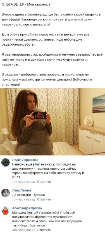 Свои впечатления от снимка и мнение о новой квартире, доставшейся Ольге Ветер-Жемчуговой, вы можете высказать в комментариях.