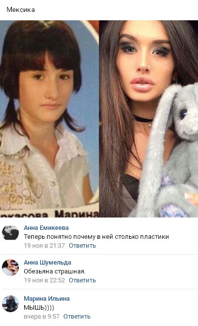 21 ноября 2016 года в Интернете нашли фотографию, сделанную еще во времена школьных лет Марины Мексики, нос девушки на этом снимке выглядит просто огромным.