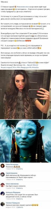 3 января 2017 года новый нос Марины Мексики, получившийся у девушки в результате ринопластической операции, стал объектом резких критических замечаний и злословия со стороны пользователей Интернета. Всем уже известно о том, что Марина, едва прибыв в столицу после Острова любви, немедленно поспешила к специалисту в области пластической хирургии. После бесед с Анастасией Лисовой Мексика решила доверить свою красоту профессионалу, которого ей порекомендовала Настя. Читайте также: Хирург изуродовал Марине Мексике половину носа Хотя фанаты телестройки с самого начала были готовы к отнюдь не самым лучшим результатам операции, то, что они увидели, многих буквально шокировало. Довольно симпатичный прежде нос Марины, хотя его и нельзя было назвать идеалом, который она к тому же умело корректировала с помощью макияжа, теперь выглядит просто чудовищно. Сама Мексика весьма напоминает персонаж кинофильма Аватар, причем без всякого грима либо соответствующих спецэффектов. Свои впечатления от снимка и мнение о том, как теперь выглядит нос Марины Мексики, вы можете изложить в комментариях.