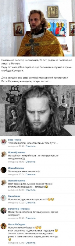 Однако известия о том, что прежде Соломенцев имел самое непосредственное отношение к религии, вынудили фанатов реалити-шоу посмотреть на него несколько иначе. Выяснилось, что возможность найти себе пару на телестройке Вальтер избрал для себя взамен церкви и веры. Появилась информация о том, что ранее этот мужчина именовался Василием и являлся священнослужителем в храме.