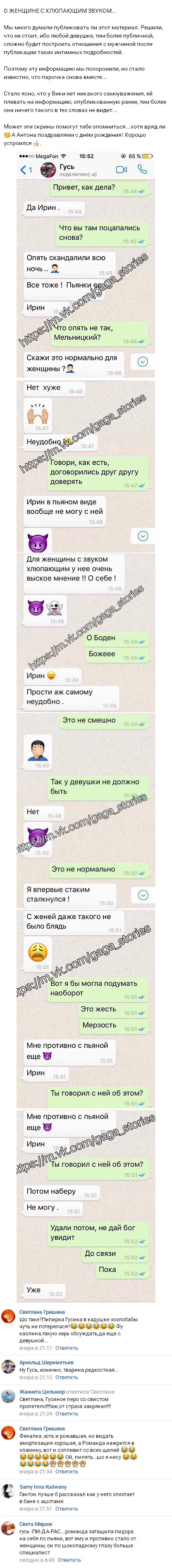 Изучившие переписку между Гусевым и его приятельницей посетители социальных сетей не в силах скрыть явного отвращения и глубокого возмущения тем, как поступил бывший участник реалити-шоу. Антон, не сообщая деталей, подчеркнул тот факт, что он совершенно не переносит интима с нетрезвой Викторией. К тому же Гусев фактически прямо заявил о том, что Романец позволяла себе сексуальные контакты с таким количеством представителей сильного пола, что теперь в промежности этой молодой женщины вполне возможно потеряться, тогда как в процессе физической близости Вика еще и издает весьма некрасивые звуки.