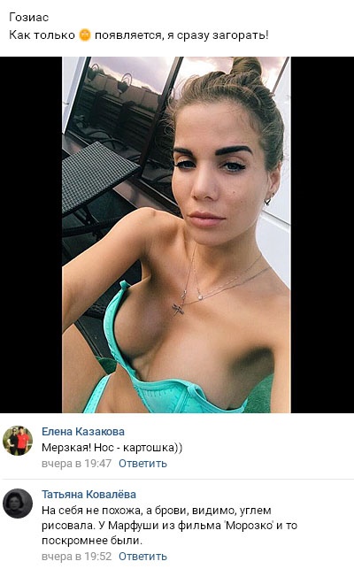 Уже после первых снимков девушки с ее новым носом подписчики выразили свое явное недовольство результатами операции, считая, что специалист в сфере пластической хирургии однозначно не слишком усердствовал, работая с Сашей. Но теперь, через несколько недель после ринопластики, нос Гозиас кажется фанатам действительно ужасающим. Многие полагают, что теперь на лице Александры находится лишенная всякой формы картошка, тогда как самой экс-участнице телепроекта, видимо, придется еще раз прибегнуть к хирургическому вмешательству.