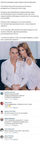 29 ноября 2017 года Константин Иванов счел возможным сообщить общественности истинную причину его расставания с Александрой Гозиас, и эта информация буквально шокировала поклонников реалити-шоу. Едва фанаты порадовались за этих двоих, ушедших из периметра и уже намеревающихся отметить бракосочетание, как Александра и Константин объявили всем о своем полном разрыве. Более того, в течение длительного времени Иванов усиленно подчеркивал тот факт, что в решении идти далее в жизни разными путями, принятом им и Сашей, нет абсолютно ничего особенного, указывая при этом, что он просто не сумел оправдать ожиданий и надежд подруги. В связи с подобными утверждениями Кости многие были искренне потрясены, когда он совершенно неожиданно решил более не скрывать от окружающих правду и без колебаний сдал прежнюю приятельницу. Как уверяет Иванов, подлинной причиной их расставания послужил даже не слишком свободный образ жизни Александры, как считали многие, а ее чересчур тесное и близкое общение с другими представителями сильного пола. Выяснилось, что Иванов, подозревающий возлюбленную в многократных изменах, все же решился установить за ней наблюдение, результаты которого поразили в первую очередь его самого. Как оказалось, Гозиас обеспечивает свое существование с помощью обыкновенных занятий проституцией. Свое мнение о том, действительно ли поводом для разрыва отношений в паре Александры Гозиас и Константина Иванова стала чрезвычайно некрасивая деятельность Саши, вы можете высказать в комментариях.