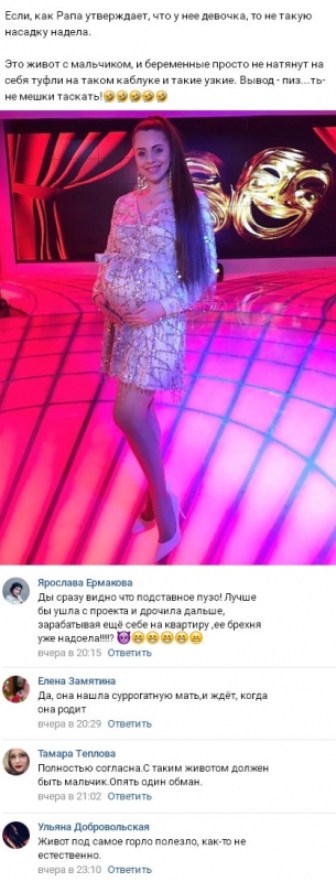 Совсем недавно она опять заставила всех усомниться в том, что действительно готовится стать матерью, не считая срока своего «интересного положения», который Ольге по каким-либо причинам никак не удается точно запомнить. Рапунцель не перестает твердить о рождении маленькой принцессы, тогда как поклонники, глядя на форму ее живота, склонны полагать, что молодая женщина ожидает мальчика. Нет ничего удивительного в том, что после такого просчета с ее стороны на просторах Интернета снова зашла речь о накладке, с помощью которой Ольга изображает беременность. При этом странную форму живота все приписали рассеянности «будущей мамы», которая однозначно случайно надела не ту насадку, которая ей требовалась.