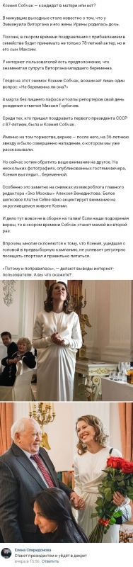 Однако существуют и те, кто не слишком верит в беременность возможного президента. Они полагают, что Собчак чрезмерно увлеклась проведением необходимых предвыборных мероприятий, перестала тщательно следить за фигурой и существенно поправилась.