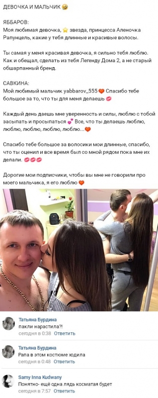 Но с появлением на горизонте Савкиной Ильи Яббарова все резко изменилось. Алена, искренне удивив многих поклонников телепередачи, завязала бурный роман с этим молодым мужчиной, обладающим отнюдь не самой лучшей репутацией. Правда, только теперь выяснилось, чем именно Илья в такой степени привлек сестру Рапунцель.