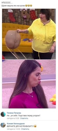 Супруга Иосифа Оганесяна по стечению обстоятельств нашла одну из тех накладок для живота, которые применяет Рапунцель. Более того, Саша без стеснения продемонстрировала данный предмет всей стране, глубоко шокировав и поразив Олю таким поступком. Со стороны самой жены Дмитрия Дмитренко пока не поступило каких бы то ни было комментариев в связи с указанным происшествием.