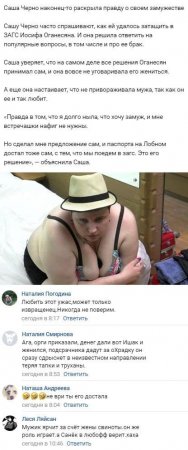 Хейтеры нередко предъявляют Саше жесткие претензии в том, что именно она настояла на визите в ЗАГС совместно с Оганесяном, в то время как сам парень еще вовсе не был готов к такому поступку и последующей семейной жизни. При этом сама Александра смотрит на ситуацию совершенно иначе, до недавних пор Черно полностью отрицала, что с ее стороны существовало хотя бы минимальное давление на избранника. Лишь накануне Саша все же решилась открыть фанатам истину относительно своего замужества.