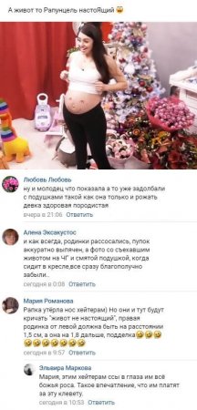 При этом основные претензии в отношении Ольги связаны именно с животом женщины. Подписчики фактически не сомневаются в том, что Рапунцель применяет особую накладку для того, чтобы изображать перед окружающими беременность. Однако, как подчеркивают противники Оли, ей однозначно не удастся ввести в заблуждение наблюдательных фанатов телепроекта.