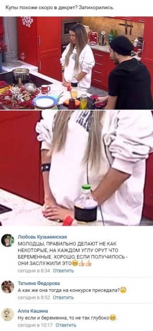 Накануне супруга Алексея Купина случайно предоставила новый повод для бесед на данную тему. Коллеги Донцовой по телешоу и телезрители уже обратили внимание на то, что на протяжении всего последнего времени Майя предпочитает носить безразмерные толстовки и свитера, чтобы скрыть от чужих глаз выпирающий живот и достаточно расплывшуюся талию. Однако и такие методы уже не в силах помочь женщине утаить от других людей очевидный факт.