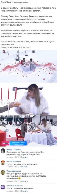 Однако в реальном времени Александра и Иосиф уже успели воссоединиться, простив друг другу все обиды. При этом столь ожидаемый поворот событий, как решение Оганесяна и Черно все же остаться вместе, стал причиной возникновения множества слухов о том, что в действительности все происходило на основании заблаговременно придуманного сценария.