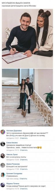 14 февраля 2020 года в социальных сетях появились фотографии, сделанные в процессе бракосочетания бывшей участницы телепроекта Татьяны Мусульбес. Ни для кого не является секретом тот факт, что уже в конце завершившегося года Таня и ее экс-супруг Виктор Литвинов оформили развод, причем их пребывание в статусе жены и мужа оказалось крайне недолговременным. Однако Мусульбес вовсе не осталась в одиночестве после расставания с Витей. Еще в период существования прежней семьи Татьяне уже сделал предложение выйти замуж ее новый возлюбленный, тогда как молодая женщина без всяких раздумий согласилась стать его супругой. Оказалось, что заключить брачные союз эти двое решили в особенный, символичный день, а именно 14 февраля. При этом никакого пышного торжества Таня и ее новоиспеченный муж устраивать не стали. Накануне в виртуальном пространстве были распространены фотоснимки Мусульбес и ее новоиспеченного спутника жизни Сергея Михи, которые были сделаны в одном из ЗАГСов Москвы. Татьяна и Сергей прибыли на церемонию заключения брака без каких-либо приглашенных гостей, и подписчики сразу заметили, что женщина рядом с избранником выглядит невероятно счастливой. Однако отнюдь не все выразили желание поздравить прежнюю героиню телестройки с происшедшей в ее жизни позитивной переменой. Некоторые откровенно упрекнули Таню в несомненной жадности, напомнив ей о том, какое грандиозное торжество она в прошлом устроила себе за счет телепрограммы. Как язвительно подчеркнули хейтеры, самостоятельно организовать подобный праздник Мусульбес однозначно не пожелала.