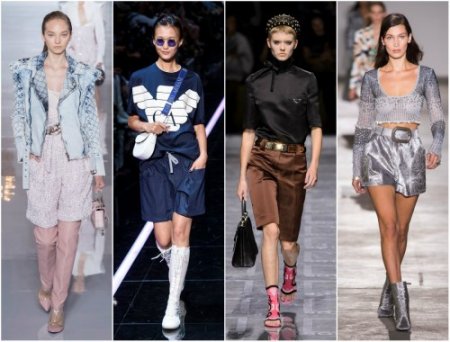 В этом сезоне шорты-бермуды входят в число актуальных тенденций. Элегантные шорты с прямым вырезом и длиной до колена или чуть выше него являются одними из фаворитов дизайнеров, которые даже включают их в костюмы. Высокая талия и комплект талии также являются общими элементами.