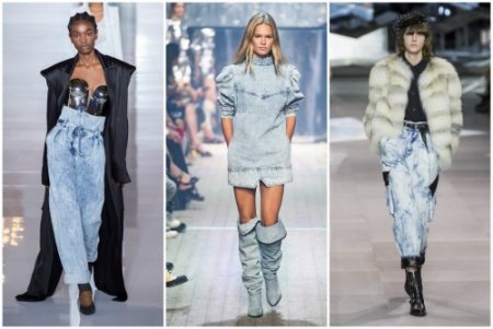 Джинс никогда не выходит из моды, но каждый год различные его вариации владеют модным подиумом. Для весны/лета 2019 года абсолютным фаворитом является потертая джинсовая одежда — выбеленные джинсы или даже намеренно выбеленные юбки и платья, вдохновленные тенденцией tie-dye. Мода на пэчворк также актуальна — в ней сочетаются кусочки джинсовой ткани разных оттенков, но из одной гаммы.