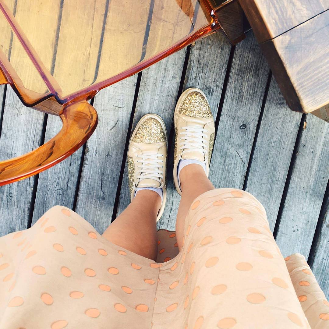 Некоторые украинские знаменитости тоже носят мои туфли - это Даша Малахова, Марина Леончук. Джамала на красной дорожке в Стокгольме была в моих туфлях. Перед ее поездкой на «Евровидение» я ей написала в Facebook, что хочу подарить классические лодочки в мерцающем цвете из своей коллекции.