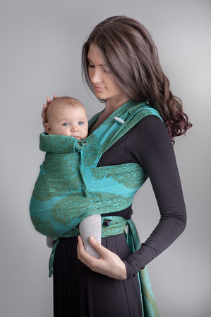 Именно благодаря тому, что шарф не имеет данной формы(по сути, это полоса ткани длиной в среднем 4-5 метров, шириной 70 сантим.), он непревзойденно подойдет для ношения и новорожденного, и малыша поветше. В нем можнож располагать малыша вертикально и горизонтально, на боку и за спиной – мать может избирать различные намотки, в зависимости от ситуации и возраста малыша, обеспечивая величайшее удобство для обоих.