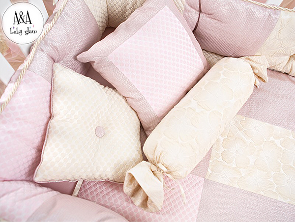 Постельное детское белье тоже непременно порадует родителей, причем не только состоявшихся, но и тех, что только ожидают появления малыша. Посмотрите, какую красоту предлагает бренд A&A Baby Glam для маленьких принцесс. Мерцающая парча Valentino подчеркивает мягкие флористические узоры и горошины на хлопковом жаккарде. Покрывало, подбитое шерстяной тканью Schervino, обеспечивает мягкость и тепло. Узнаваемая деталь от A&A Baby Glam – декоративная подушка в форме конфеты, которая поднимает настроение и напоминает о радостях детства. Удобный мягкий бортик надежно защищает, комфортное покрывало и подушки превращают кроватку в уютное гнездышко.