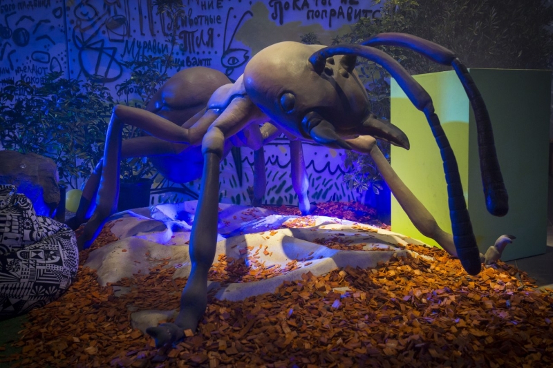 Все они шевелятся и издают разные звуки, а сделали эти огромные копии из пластика и силикона в масштабе 1:1000. Гордость выставки «Маленькие люди в большом мире насекомых» - 5-метровый кузнечик: чтобы как следует его разглядеть, рядом установили специальный батут. Приводить на выставку можно малышей любого возраста – интересно будет всем.