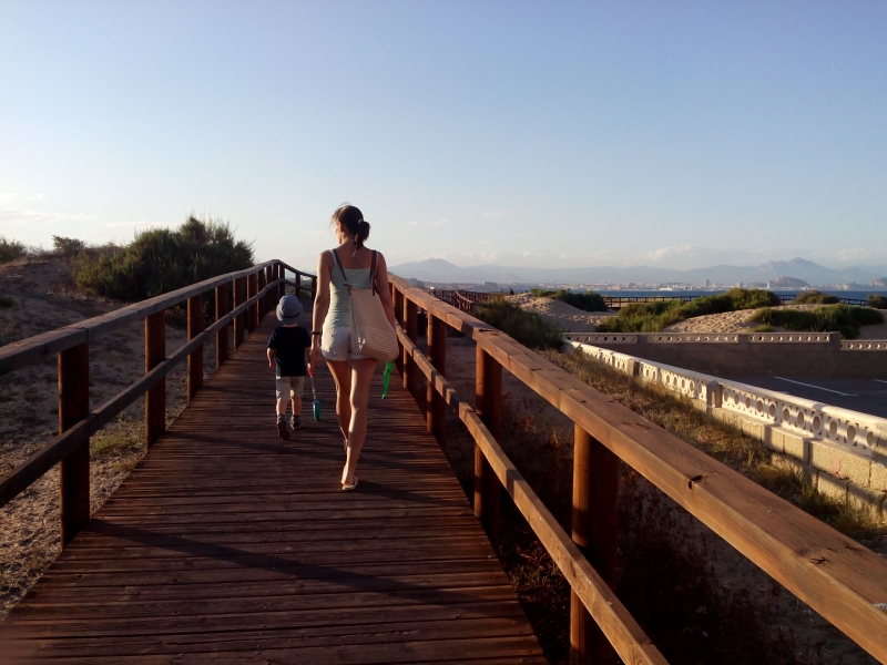 Днем было около тридцати, но по вечерам дул весьма ощутимый ветер, так что утренние водные процедуры, строительство замков и приставания к отдыхающим местным жителям чередовались с вечерними поездками в Аликанте и Эльче. Эльче понравился нам больше. Не самый популярный среди туристов город с тихими и очень живописными улицами, маленькие, но уютные старые кварталы, множество фонтанов и потрясающий парк, где можно спуститься под мосты и идти по раскрашенным бетонным дорожкам вдоль канала. Кондитерские, кафе, детские площадки, орчата…