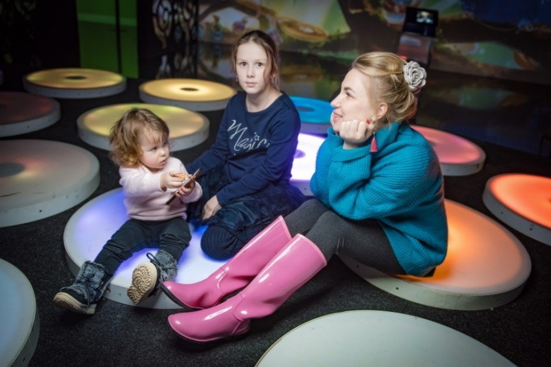 Двухлетняя Северина проявила свои храбрые качества и не побоялась темноты. Заботливая старшая сестра Октавия помогала своей сестре проходить все испытания - разбивать летающую посуду игрушечными ежами, раскрашивать и оживлять сказочных героев, а главное – прыгать по огромным цветным кнопкам и щекотать Бармаглота.