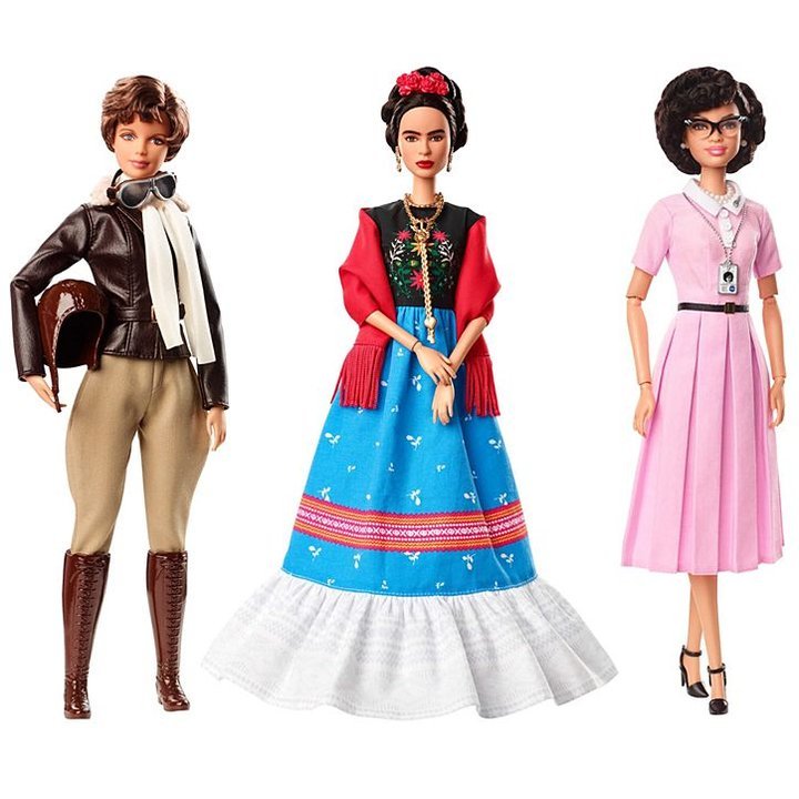 Компания Mattel старательно пытается изменить репутацию куклы "Барби": длинноногую красотку многократно обвиняли в том, что она прививает детям неправильные представления о нормальном теле.Теперь среди кукол появились модели plus size ( по сути женщины с обычной фигурой, но ладно), куклы в хиджабе, а в честь праздника Mattel анонсировала новую линейку "Ролевые модели" или "Примеры для подражания".